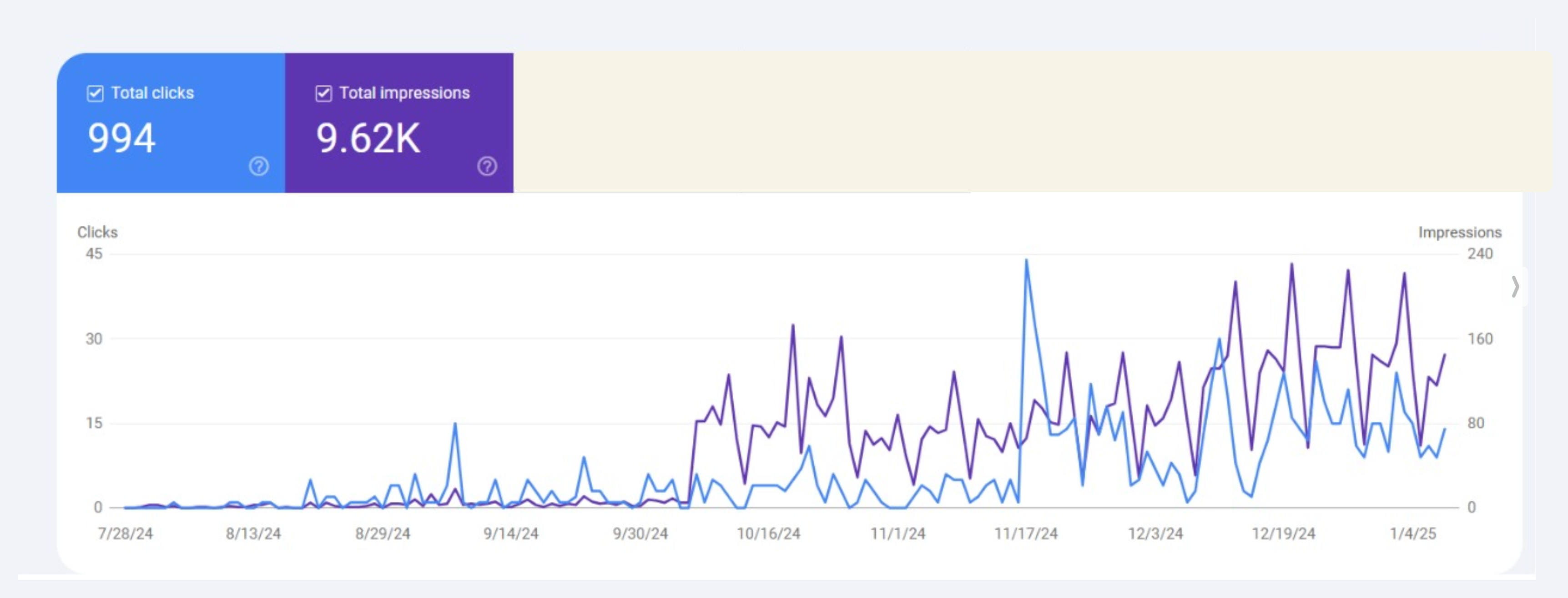 Monthly impressions on Google search results