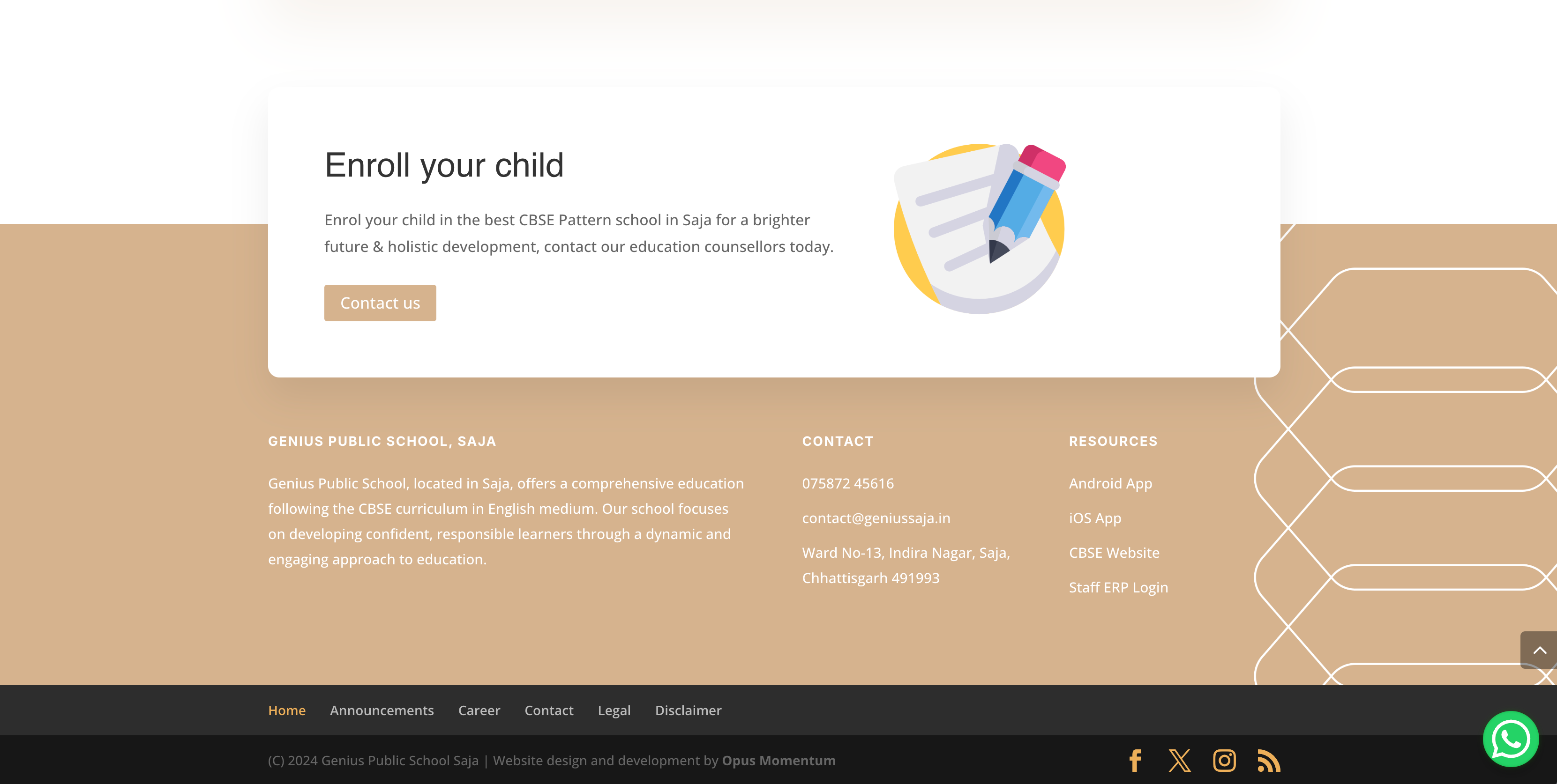 In 2024, Opus Momentum partnered with Genius Public School, Saja, a renowned public institution in Chhattisgarh catering to approximately 800 students from Nursery through 12th grade, to undertake an extensive website redesign and redevelopment project. The school’s previous site, constructed on outdated technology and archaic frameworks, no longer met its operational or branding needs. With an emphasis on performance, security, and user experience, we rebuilt the site from the ground up, leveraging the latest web standards, robust cloud infrastructure, and a suite of advanced technologies.